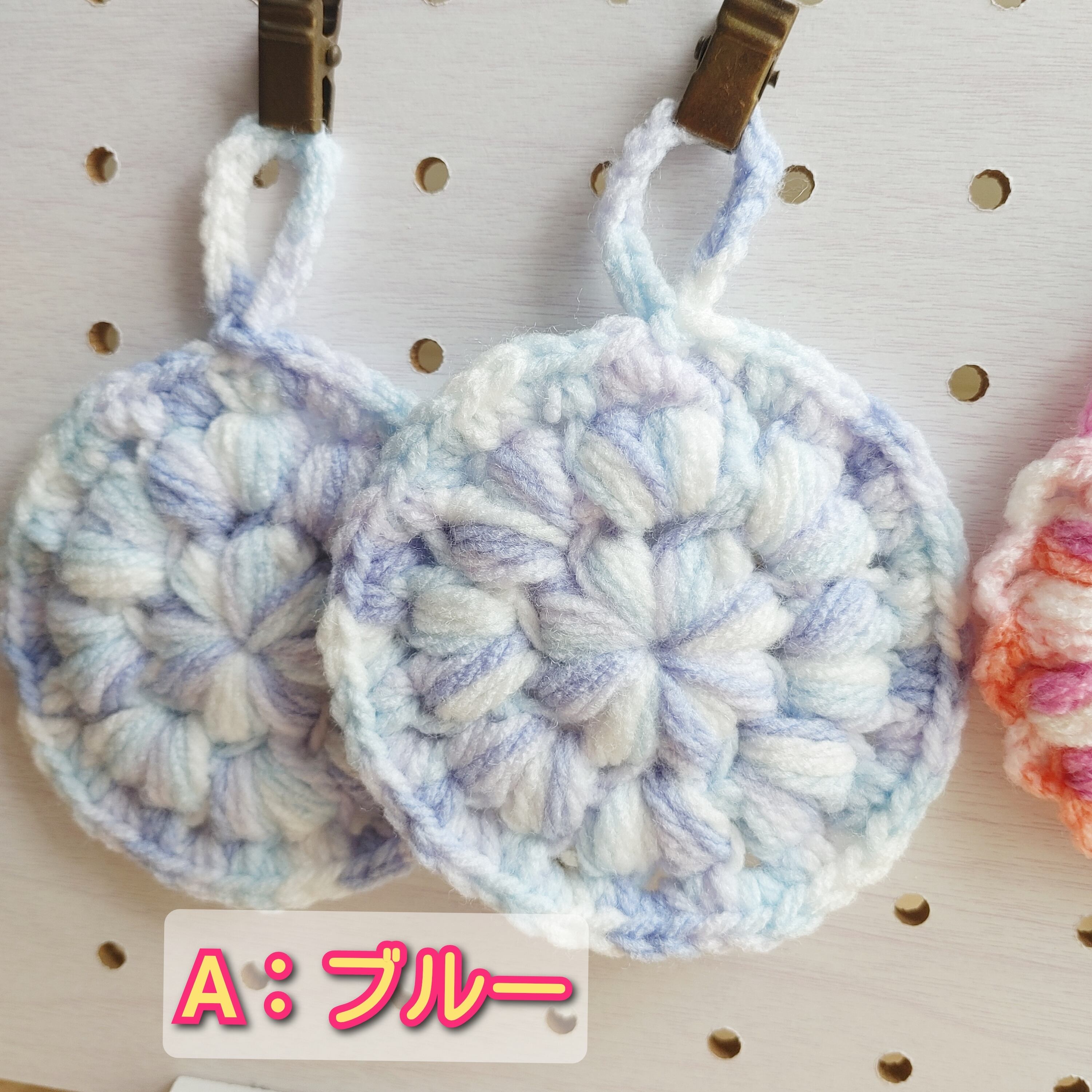 アクリル糸で編んだ手のひらサイズのエコたわしです