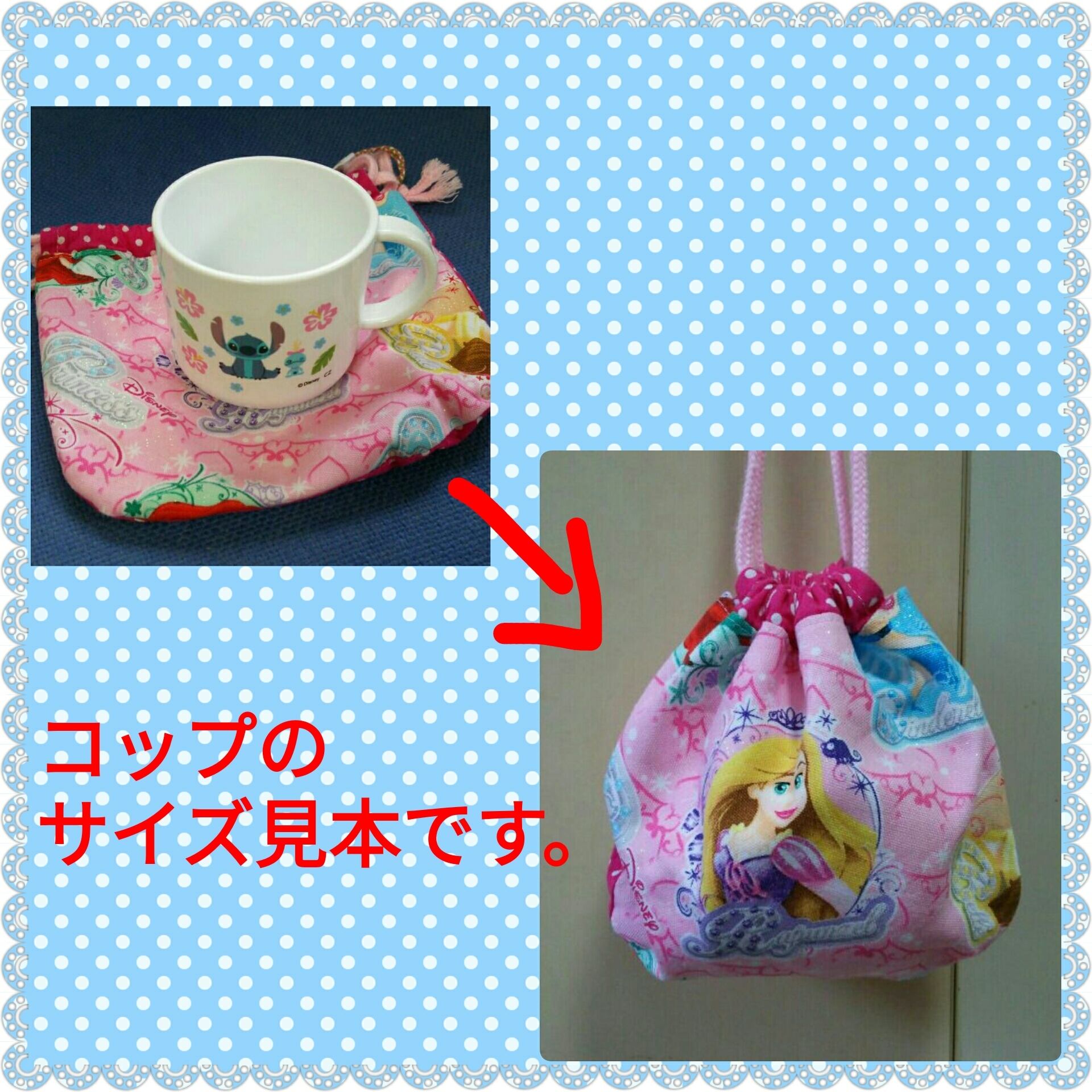 コップ袋使用の見本写真あります。
