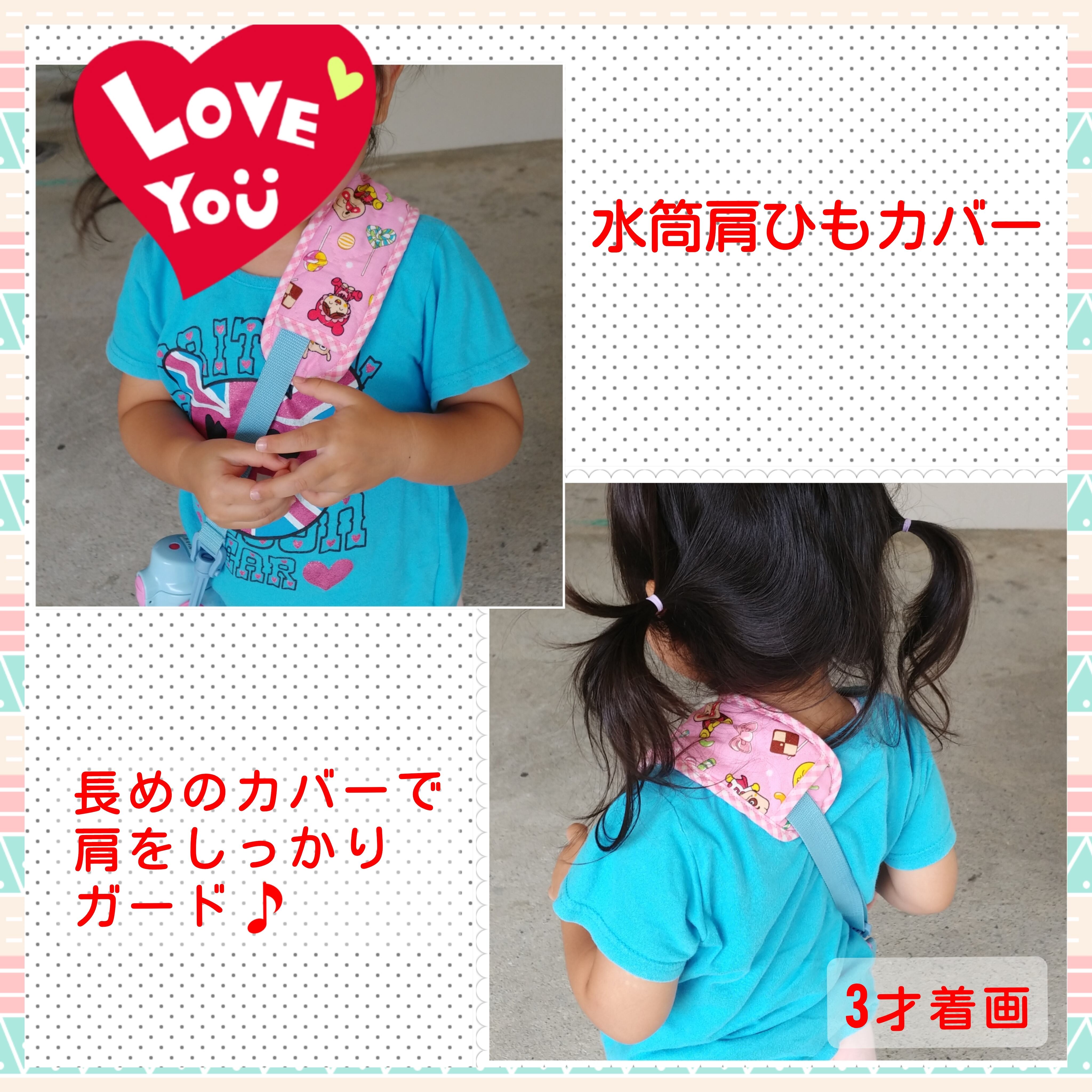 水筒ひもの肩へ食い込みや擦れ防止のためのアイテムです。